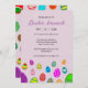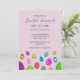 Many colourful and beautiful Easter eggs on an invitation to an Easter brunch and egg hunt.