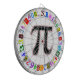 A colourful and fun depiction of pi. In this design the digits of pi, in many colours and each rendered in its own unique font, form a circle around the Greek letter. Great for math lovers and math geeks. Great for Pi Day.