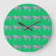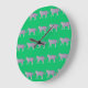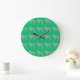 Colourful Animal Pattern on Green Background Large Clock