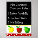 Cute teacher's classroom rules poster, done in black, with graphics of colourful apples, on a white band, across the bottom. Personalise the white text to suit your classroom's needs.