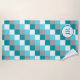 Colourful Aqua and Teal Check Personalised Intials Beach Towel