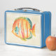 This is a standard metal lunchbox that appears to work just fine. We designed this box ourselves with an uploaded photo and custom text on the front and back. It looks absolutely beautiful except the front of the lunchbox is not centered like it shows in the photo. The print borders don't align with the inset flat part of the box where the preview photo online showed it perfectly centered in there. The back looks nice and centered though.