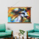 Beautiful print of a rainbow colour horse. Running with the wind blowing his hair back.. With a unique colourful abstract background. The Arabian horse has a rainbow colour chest . With black and orange abstract main. With a cool funky abstract background. And a red trim around the outside.
