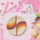 Retro style double arches geometrical pattern illustration with orange, yellow red and beige stripes decoration on pastel background for everybody who likes retro style design and colour palette.