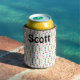 This can cooler has a mid-century modern design of arrows made from black lines and different shapes in retro colours of red, blue, green, orange, gold, and grey on a field of white. Keep the name, change it, or delete it completely. Want the same design with different colours? Message me.