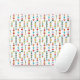 This mouse pad has a mid-century modern design of arrows made from black lines and different shapes in retro colours of red, blue, green, orange, gold, and grey on a field of white. Want the same design with different colours? Message me.