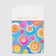 Abstract Circles Art pattern in yellows, blues, pinks, oranges, orange trim with custom OWN TEXT in golden yellow. Easy to personalise text, text colour, border colour. Great for ANY sport, golf cart, locker, gym bag, event favour. Colourful, Artisan, Fun. Mix and match entire Abstract Art Collection by TMCdesigns.