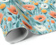 Colourful art flowers-aqua, white, peach, yellow, wrapping paper