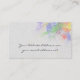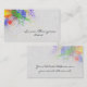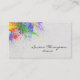 Sometimes the simplest designs make the biggest impact. This is a business card your clients won't forget. Bright paint splatters in the top corner on a canvas texture. The back has the same splatters on the right top corner but a little lighter.