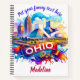 This colourful artwork showcases Ohio's skyline, featuring impressive modern buildings along the waterfront, blending nature with urban life in a lively and creative way.