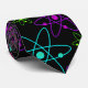 Black background with atoms of various sizes and colours ( lime green, hot pink, turquoise and purple among others). Perfect for the fashionable geek