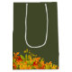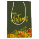 This design with leaves in green, reds and orange tones works perfect. The green background colour can be replaced with any colour of your wish. Text can easily be customised. Also text font, size and colour can be adjusted.