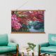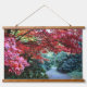 Decorate your living space with this horizontal, hanging wall tapestry with wooden tops that features fiery, autumn coloured Japanese maple leaves along a garden walk. A lovely, floral design!