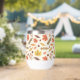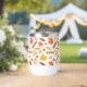 This design showcases a lively autumn-themed pattern featuring a variety of colourful leaves and acorns. The background is a light cream colour with subtle speckles, adding texture and depth to the design. The pattern includes maple leaves in vibrant shades of red, yellow, and orange, along with other leaves in warm browns, muted greens, and soft pinks. Scattered among the leaves are small acorns and clusters of berries, enhancing the fall ambiance. The arrangement is both whimsical and balanced, capturing the cosy and festive spirit of the autumn season.