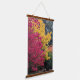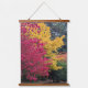 Decorate your living space with this vertical, hanging wall tapestry with wooden tops that features the photo image of colourful and vibrant autumn colours of yellow maple leaves and magenta coloured Burning Bush plant. A lovely, botanical decor for the home!