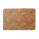 Seasonal bath mat features watercolor leaves pattern in Fall orange, gold and cranberry colours on brown background.