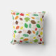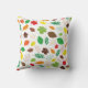 This modern throw pillow features an autumnal pattern with various leaves yellow, orange, red, and brown hues.