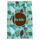 Colourful Autumn leaves seamless pattern with a changeable turquoise background.
