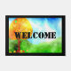Colourful Autumn Welcome Door Mat with Green Grass, blue sky and Maple Tree
