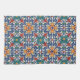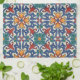Colourful watercolor azulejos ceramic tiles pattern on a white background.