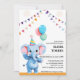 Colourful Baby Elephant with Balloons Baby Shower Invitation
