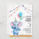 Colourful Baby Elephant with Balloons Baby Shower Invitation