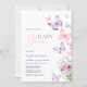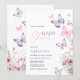 This template is part of the Butterfly baby shower collection chraacterised by watercolor butterflies and flowers in pink, blush, and purple colour.