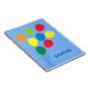 This cute boys notebook features a graphic of a grouping of bold coloured balloons waving in the wind. The background is light blue which makes it perfect for a young boy.