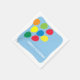 This cute boys birthday party paper napkin features a graphic of a grouping of bold coloured balloons waving in the wind. The background is light blue which makes it perfect for a little boy's birthday.