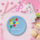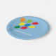 This festive boys birthday party paper plate features a graphic of a grouping of bold coloured balloons waving in the wind. The background is light blue which makes it perfect for a little boy's birthday.