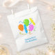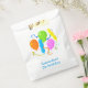 Fun birthday favour bag with a colourful graphics of different shaped balloons, streamers, and confetti. Personalise the blue custom text for birthday party event. Great for all your party favour needs.