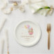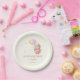 Birthday paper plate featuring a cute bear with pink party hat and holding colourful balloons. ideal for your girls' teddy bear's birthday party!