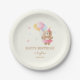 Colourful Balloons Cute Bear Girl Birthday Paper Plate