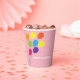 This cute girls birthday party paper cup features a graphic of a bouquet of multicolored balloons waving in the wind. The background is a soft pink which makes it perfect for a little girl's birthday.