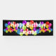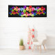 Fun happy birthday banner with colourful floating balloons. Add your name to it and change the background colour if you like.