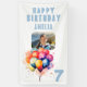 Colourful Balloons Watercolor Photo Birthday Party Banner. Fun and cute birthday backdrop for a girl or a boy. Add your name, photo and age.