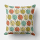 Illustrated balls of wool in polka dot pattern on colourful, quirky throw cushions.