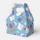 This favour box is perfect for any baseball theme party! It has many colourful baseball elements which include cute baseball tees like the striped tee with different colour sleeves and collar, a vest like tee with the alphabet B, baseball, bat, helmet, cap, mitt and decorations with stars. Personalise with party details.