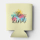 This cute can cooler features a whimsical heart and a colourful paint splash in shades of blue, yellow, pink, and green, along with trendy text that reads: be kind.