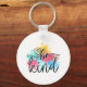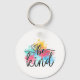 This cute keychain features a whimsical heart and a colourful paint splash in shades of blue, yellow, pink and green along with trendy text that reads: be kind.