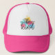 This cute tgrucker hat features a whimsical heart and a colourful paint splash in shades of blue, yellow, pink and green along with trendy text that reads: be kind. Add a splash of colour to your wardrobe with this cute inspirational hat.