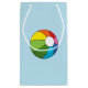 A drawing of a colourful beach ball. It has eight different colours such as red, orange, yellow, apple green, green, blue, indigo and magenta. This simple concept is a good welcome for summer.