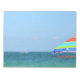 Picture yourself under this bright colourful beach umbrella lookin at a tropical sea with an approaching boat. Customise with your name there and your notes will say it all!