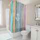 Colourful Beach Wood Nautical Stripes & Anchor Shower Curtain