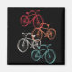 Retro style grunge bicycles illustration with red, orange, grey and turquoise bicycles decoration