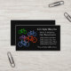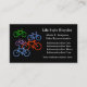 Bright and colourful bicycles in red, green, blue, and purple decorate the left side of this business card. The right side holds your easily customised business text in white. The images and text are placed on a dramatic black background. The back of the card is also black, with an extra information field if you need it. Perfect for any business that is centred around bicycles, or just for fun!