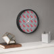 The size of the clock is dramatic and the abstract alcohol ink design is soothing and intricate at the same time. I chose the black frame that adds pop to the blue and gold design. The gold printing would be better in a slightly darker or larger font. I love it and I’m looking for just the right place in ny new apartment. I would recommend this clock for a personal gift or a present. I feel that the quality is excellent for the money! I’m a bit of a clock nut so I’m pretty particular about my purchases. The clock is larger in diameter than many if the clocks I have, so it stands out very well. I think a slightly darker printing color and a moderately larger size would best suit a professional decor or add more impact in a work place item.