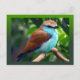 A public domain beautifully coloured bird with a blue breast and reddish brown wings sitting on a tree limb.