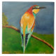 The colourful bird's feathers (a kingfisher) with the sunlight on his back, contrast with the nearing storm clouds.
