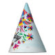 Colourful Mexican style pattern, with happy birthday message, and a bunch of colourful birds, this party hat is perfect for all ages.
